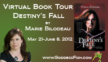 Marie will give away a signed eBook copy of Destiny’s Blood (the first book in the series) to one randomly drawn commenter at every stop, and an autographed set of Destiny’s Blood and Destiny’s Fall in print (US and Canada only) or eBook (International) to one randomly drawn commenter during the tour. She’ll also give an autographed set of books to the host with the most comments (excluding hers and the host’s).