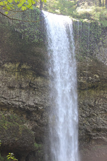 We took our rain gear but the only water we needed protection from were from the falls. There are three falls where the trail leads behind the cascading water. The amount of water rushing over the cliff above us at the south falls had us pulling on our rain jackets and hoods. My sun glasses needed wipers.